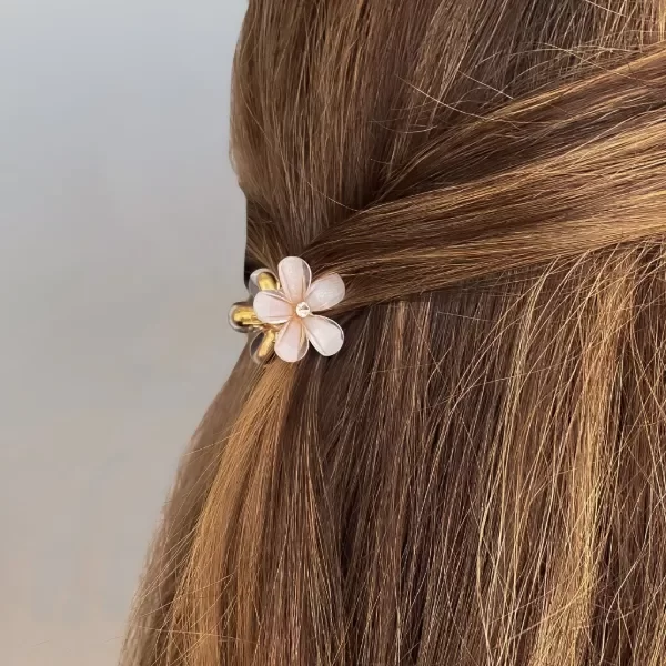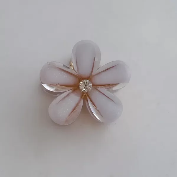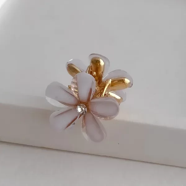 Broche para el cabello con diseño de flores delicadas, pétalos símil ojo de gato, uno liso y otro surcado por una fina línea.