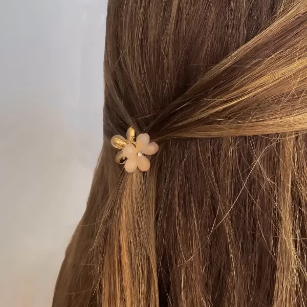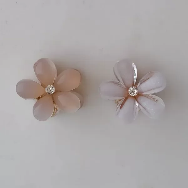 Broche para el cabello con diseño de flores delicadas, pétalos símil ojo de gato, uno liso y otro surcado por una fina línea.