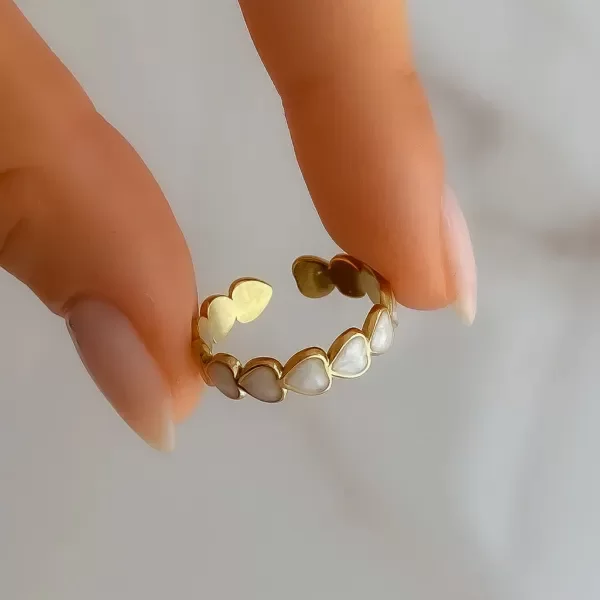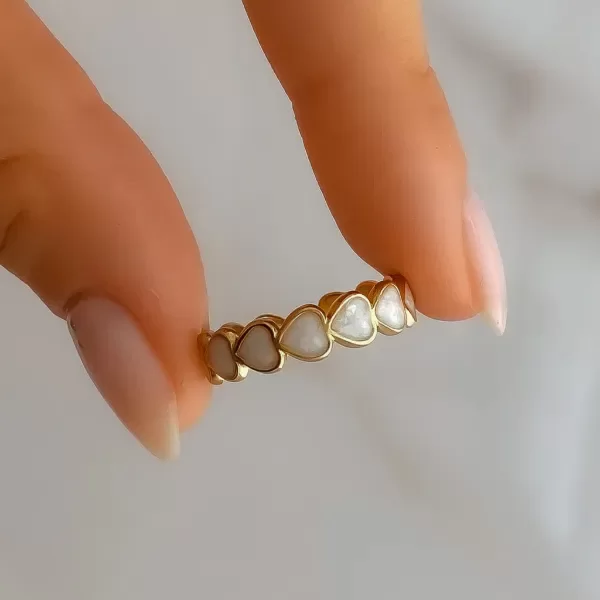 Anillo sin fin de corazones, con esmaltado en tonos blancos que aporta un toque delicado y romántico.