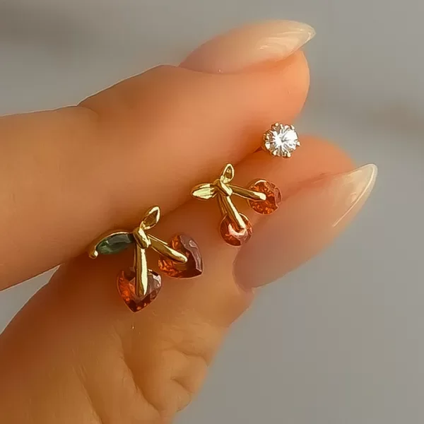 Par de aros mini cerezas con brillantes rubí.
