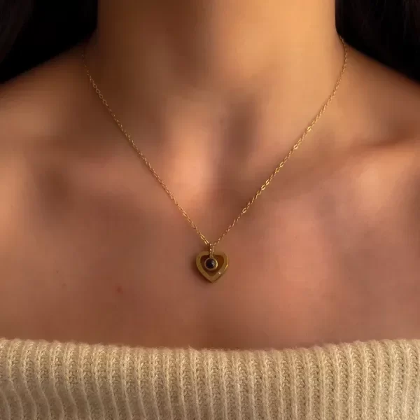 Conjunto cadena tiffany más dije corazón y piedra que contiene el mensaje oculto de " te amo en cien idiomas".