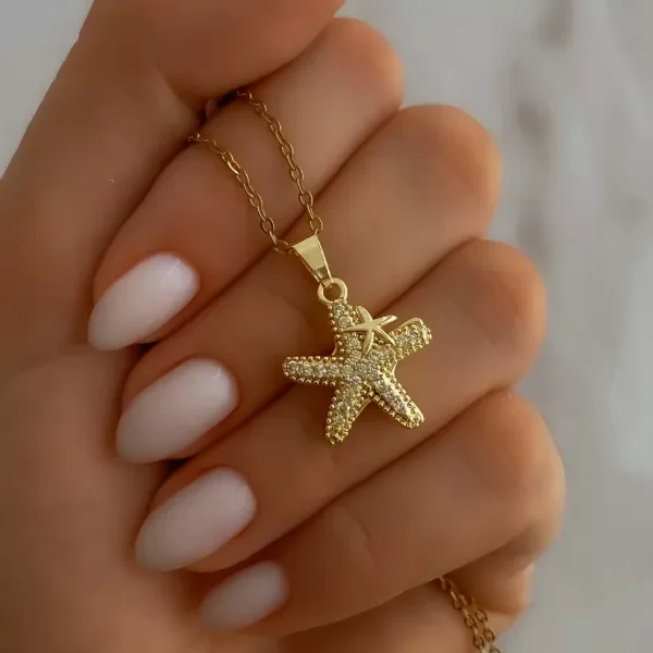 Collar de cadena tiffany con dije doble estrella de mar simil nácar y terminada en brillante.