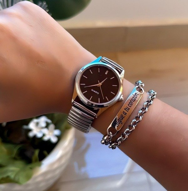 RELOJ SIRIA PLATEADO CON NEGRO👑